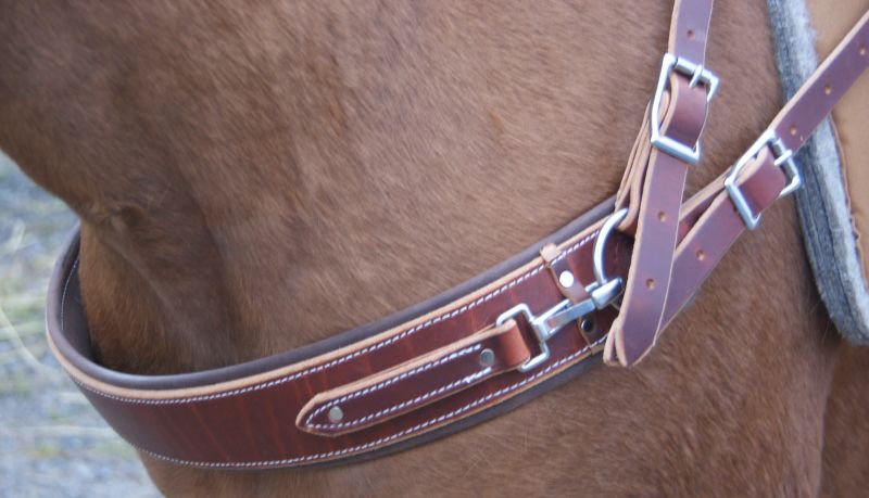 Das Breats Collar (Vordergeschirr) ist mittelst der Breast Collar Rigging (Tragriemen) so anzupassen, dass das Brustblatt möglichst hoch über dem Buggelenken der Vorderbrust leicht anliegt. Das Einschnallen in der Weite hat so zu geschehen, dass beim Kürzerschnallen zum Bergauflaufen nicht infolge zu enger Normalschnallung ein Druck auf vorspringenden Teil der Luftröhre und somit Behinderung das Saumtieres in der Arbeit entsteht.