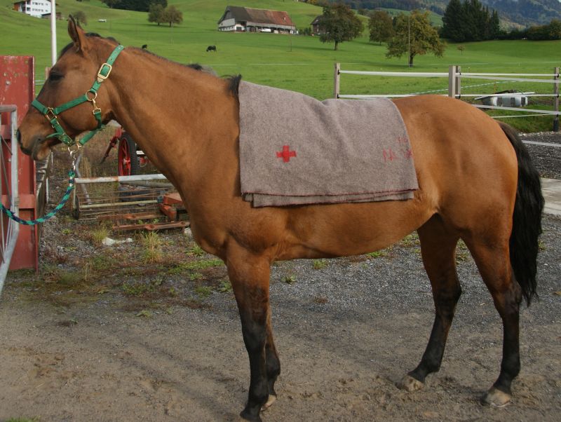 b. als Wärmeschutz für das ungeschirrte Pferd