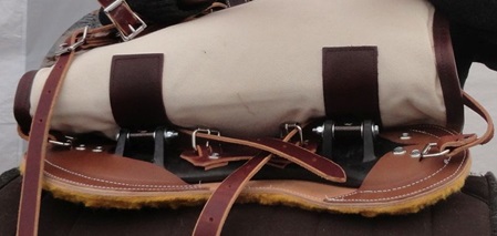 Der Phillips Formfitter Pack Saddle ist ein Packsattel der von Outfitters Pack Station in Weiser Idaho ohne starren Baum hergestellt wird. Die zwei Trachten bewegen sich unabhängig und dadurch passen sie sich dem Rücken des Tragtiers an. Und Preis Leistung stimmt. Seine Vorteile sind dass er auf Kurze und Runde Tragiere passt. Für Pony und Esel gibt es einen kürzeren Sattelbaum. Und sein geringes Gewicht von 14 Kg mit Geschirr. Auf der Outfitters Pack Station in Weiser führten mir Simone und ihr Mann Walt den Sattel zuerst auf einem schmalen Muli und dann auf einer Mustang-Kugel vor. Auf beiden unterschiedlichen Tieren passte er bestens.